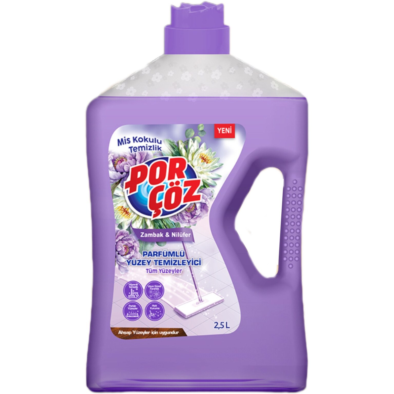 مایع پاک کننده سطوح پورچوز Porcoz رایحه زنبق و نیلوفر آبی یک محصول چند منظوره می باشد که برای تمیز کردن سطوح مختلف مثل کف آشپزخانه، حمام، سرویس بهداشتی و یا حتی سطوح رنگ شده طراحی و تولید شده است.چربی و روغن هایی که در کف آشپزخانه ایجاد می شوند بسیار اذیت کننده می باشند و چهره نامطلوبی به آشپزخانه می بخشند. این مایع پاک کننده سطوح حاوی سورفکتانت های آنیونیک می باشند که این عامل باعث می شود چربی ها را به خوبی تجزیه کرده و هیچگونه آثاری از آن به جا نماند.رسوبات صابون و آهک در حمام نیز از دیگر عوامل آزاردهنده می باشند که مایع پاک کننده سطوح پورچوز Porcoz رایحه زنبق و نیلوفر آبی با نرم کردن و حل کردن جرم با استفاده از سدیم هیدروکسید موجود در فرمولاسیون خود به خوبی این لکه ها را از بین می برد و جلوه ای تمیز و زیبا به حمام شما می بخشد.